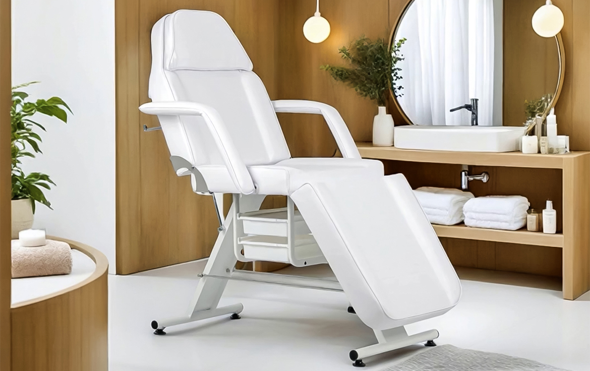 Pozycja leżanki: możliwość przekształcenia fotela w wygodną leżankę, idealną do zabiegów relaksacyjnych i kosmetycznych.