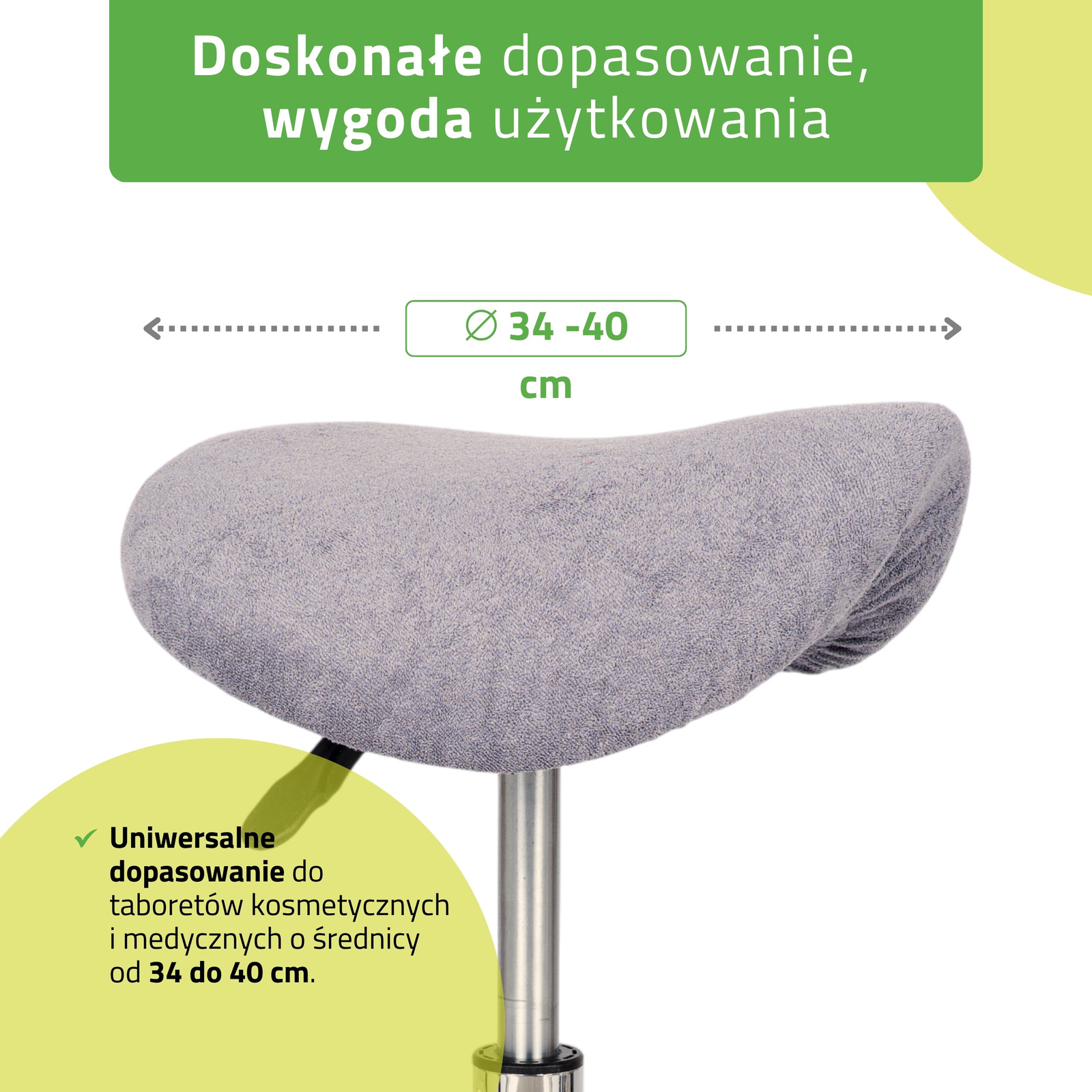 Pokrowiec został zaprojektowany z myślą o szerokim zastosowaniu w profesjonalnych gabinetach. Dzięki elastycznej gumce idealnie dopasowuje się do siedzisk taboretów o średnicy od 34 do 40 cm.