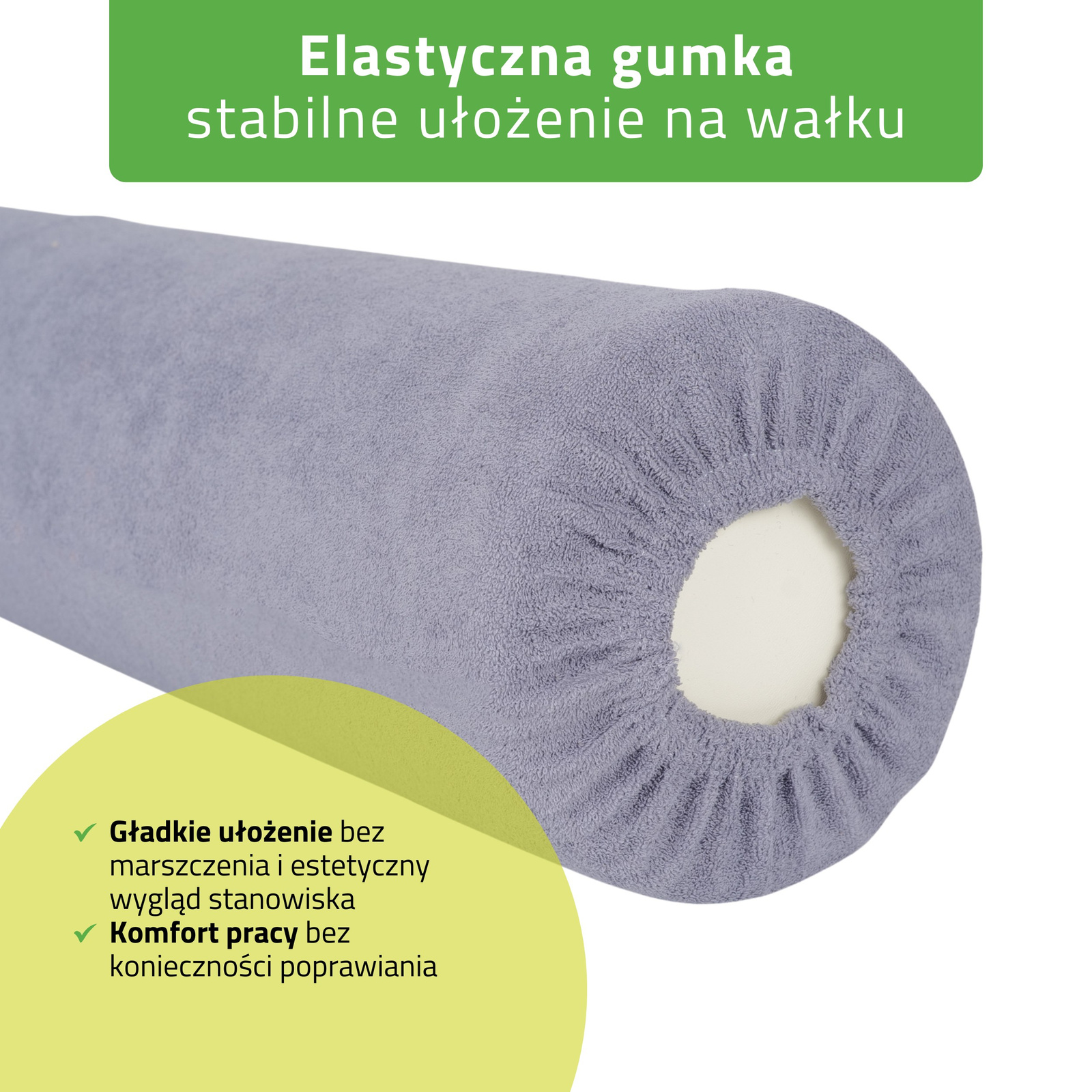 Prześcieradło skutecznie chroni wałek przed zabrudzeniami, potem, kosmetykami oraz zużyciem mechanicznym, ułatwiając utrzymanie czystości w gabinecie.
