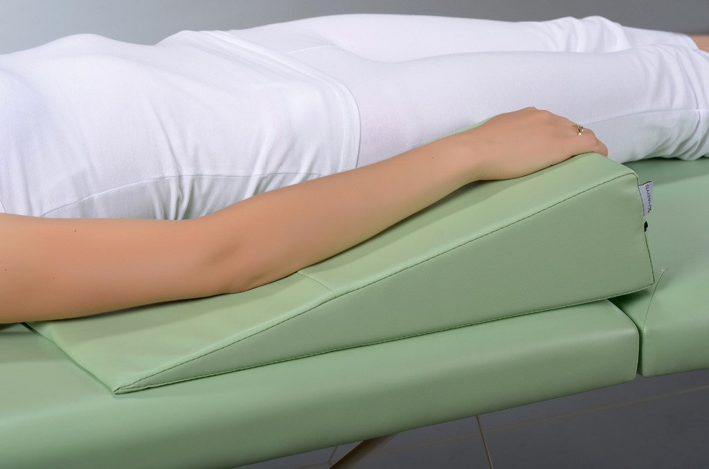 - Różnorodność kształtów i rozmiarów pozwala na wykorzystanie klinów do wielu zadań. Umożliwia ułożenie przeciwobrzękowe, zwiększając odpływ krwi i chłonki z kończyny górnej.