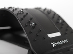 Przyrząd do rozciągania pleców jest wygodny i bezpieczny w użyciu, można go stosować w celach zdrowotnych i profilaktycznych. Jest poręczny, łatwy w przechowywaniu i w prosty, szybki sposób się rozkłada. Można z niego korzystać zarówno w pozycji siedzącej, jak i leżącej, w domu, w pracy czy w gabinecie. Przyrząd został wyposażony w stabilną podstawę oraz miękki, komfortowy element wykonany z pianki, przechodzący przez jego środek, który łagodzi nacisk na kręgi. Wzdłuż pasów bocznych znajdują się wypustki masujące oraz magnesy, które poprawiają krążenie krwi, działają jak akupunktura i generują mikro pole magnetyczne. Dzięki temu rozwiązaniu produkt ma podwójne zastosowanie: może posłużyć do rozciągania i masowania pleców, jak również do delikatnego masażu stóp.