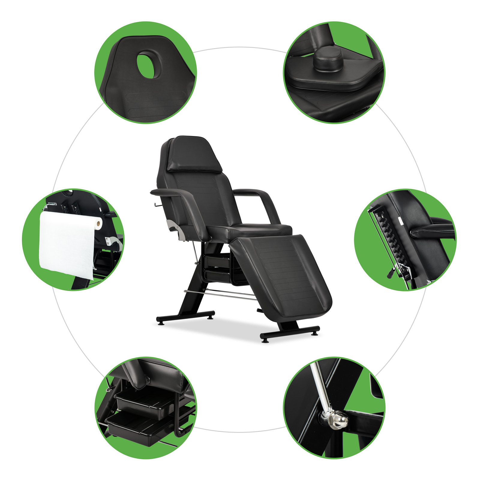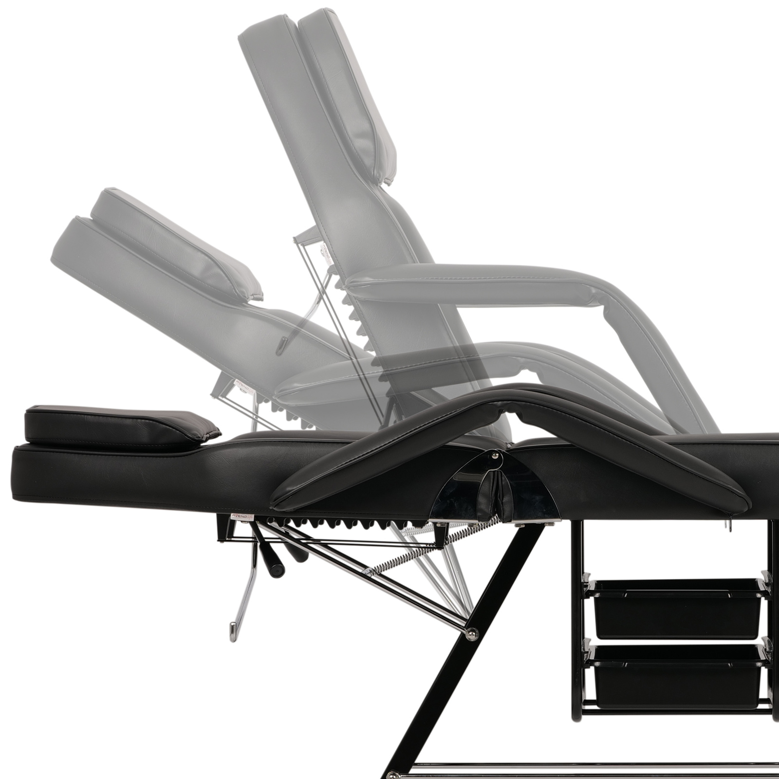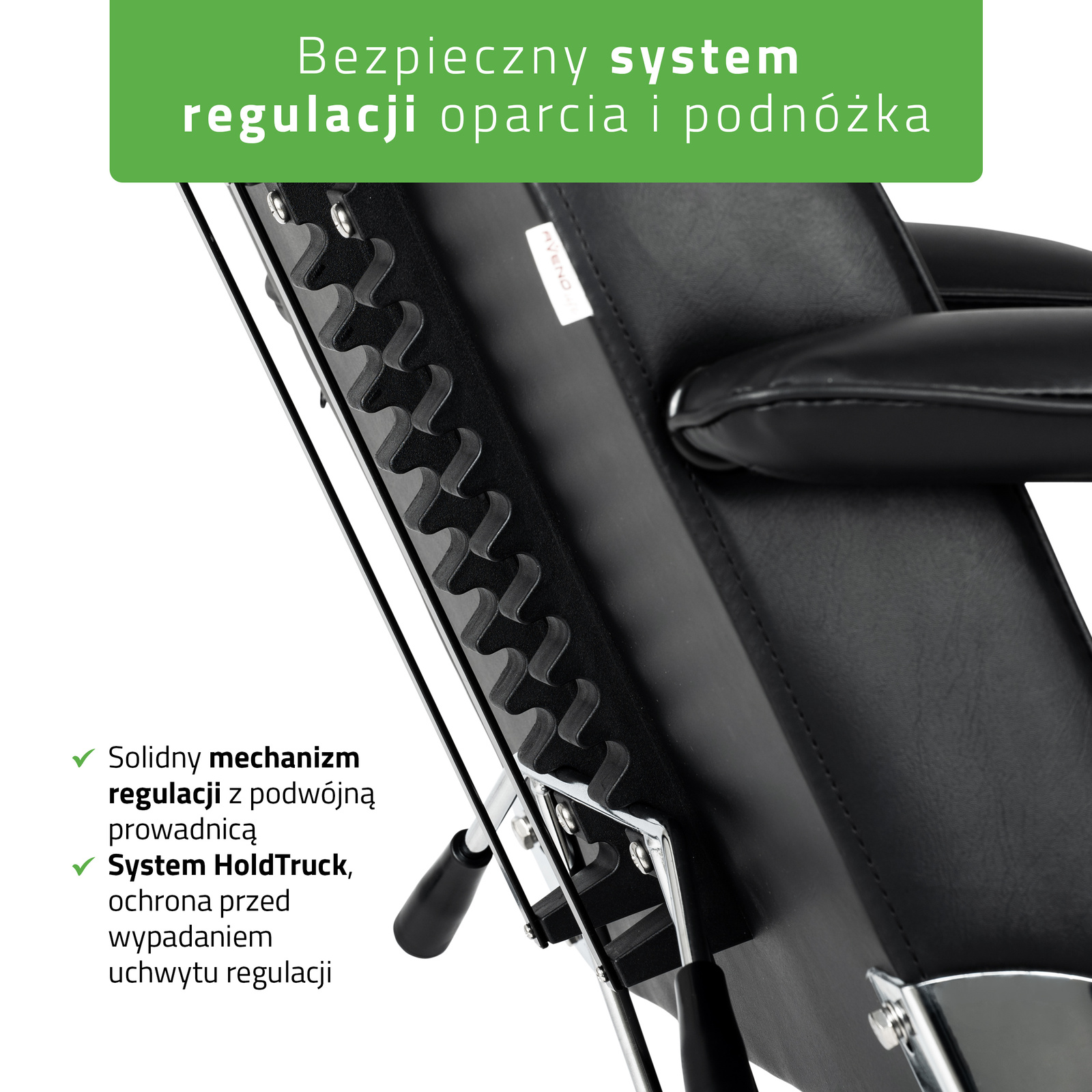 Pozycja leżanki: możliwość przekształcenia fotela w wygodną leżankę, idealną do zabiegów relaksacyjnych i kosmetycznych.