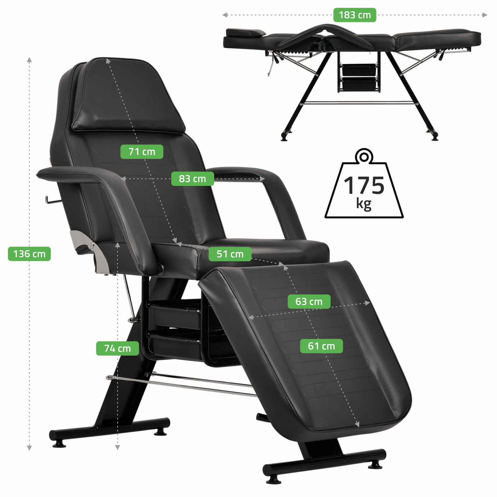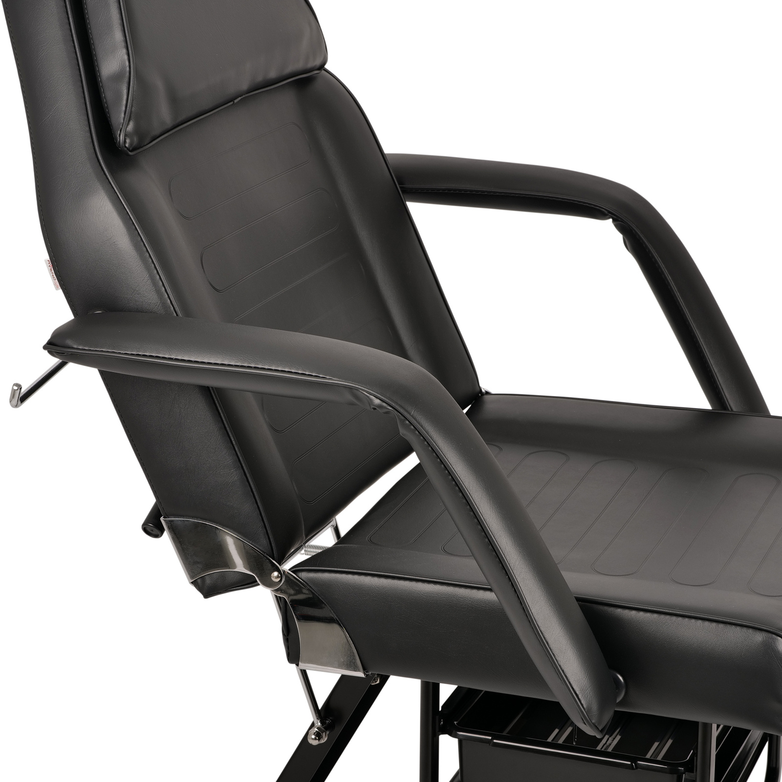 Fotel kosmetyczny ARIA NERO z kuwetami oraz uchwytem na podkład w rolce to profesjonalny i komfortowy sprzęt do salonu kosmetycznego, SPA, stref wellness oraz salonów tatuażu. Solidne komponenty, wysoka wytrzymałość na obciążenia (do 175 kg), dodatkowo wzmocniona konstrukcja, estetyczne wykończenie oraz funkcjonalne wyposażenie sprawiają, że Aria spełnia najwyższe wymagania klientów oraz specjalistów.