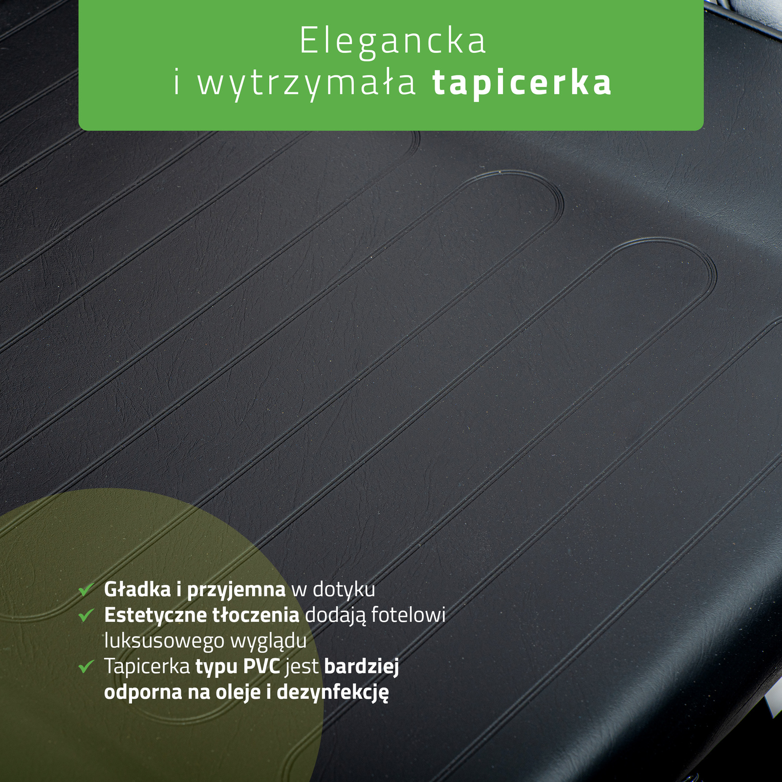 Elegancka i odporna tapicerka PVC z tłoczeniami: podkreśla wysoką jakość i estetykę wykonania oraz dodaje fotelowi luksusowego wyglądu.