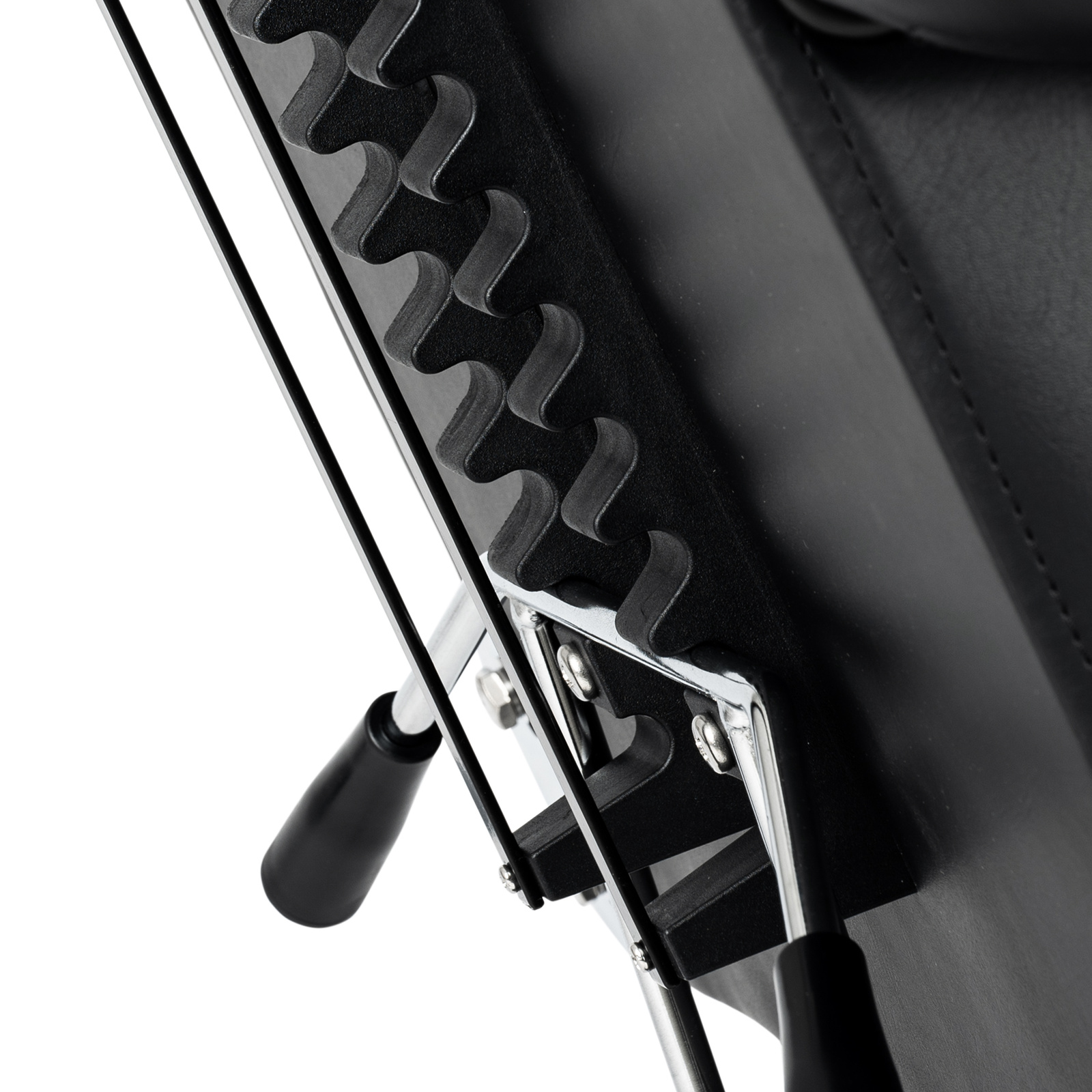 Regulacja kąta nachylenia oparcia oraz podnóżka z zabezpieczeniem HoldTruck: umożliwia dokładne dopasowanie pozycji fotela do indywidualnych potrzeb. Podwójne prowadnice z systemem HoldTruck zabezpieczają przed wypadaniem uchwytu regulacji.