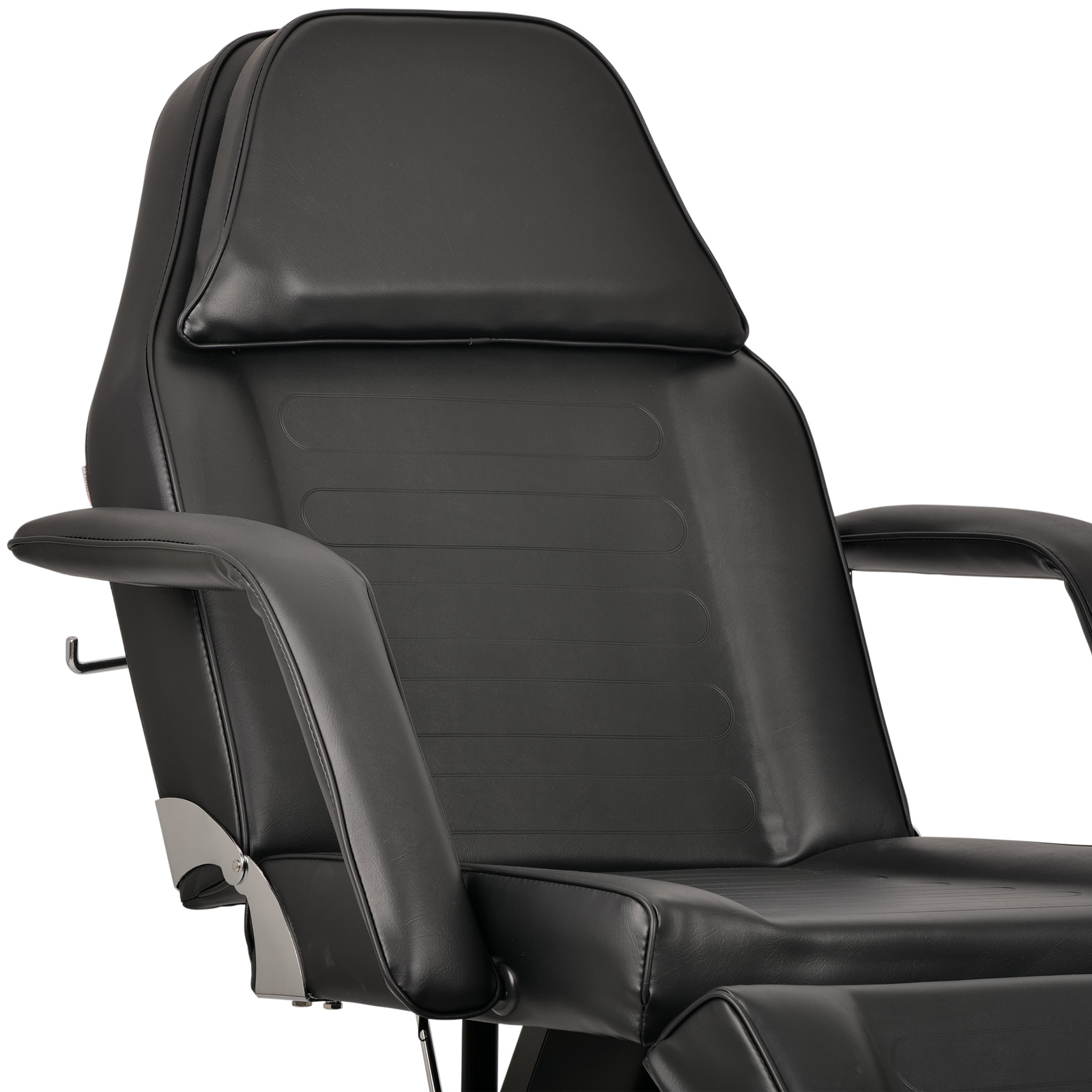 Komfortowe zdejmowane podłokietniki z grubej pianki: zapewniają doskonałe podparcie rąk podczas zabiegów. Po zdjęciu podłokietników specjalista zyskuje lepszy dostęp do klienta w bocznej części.