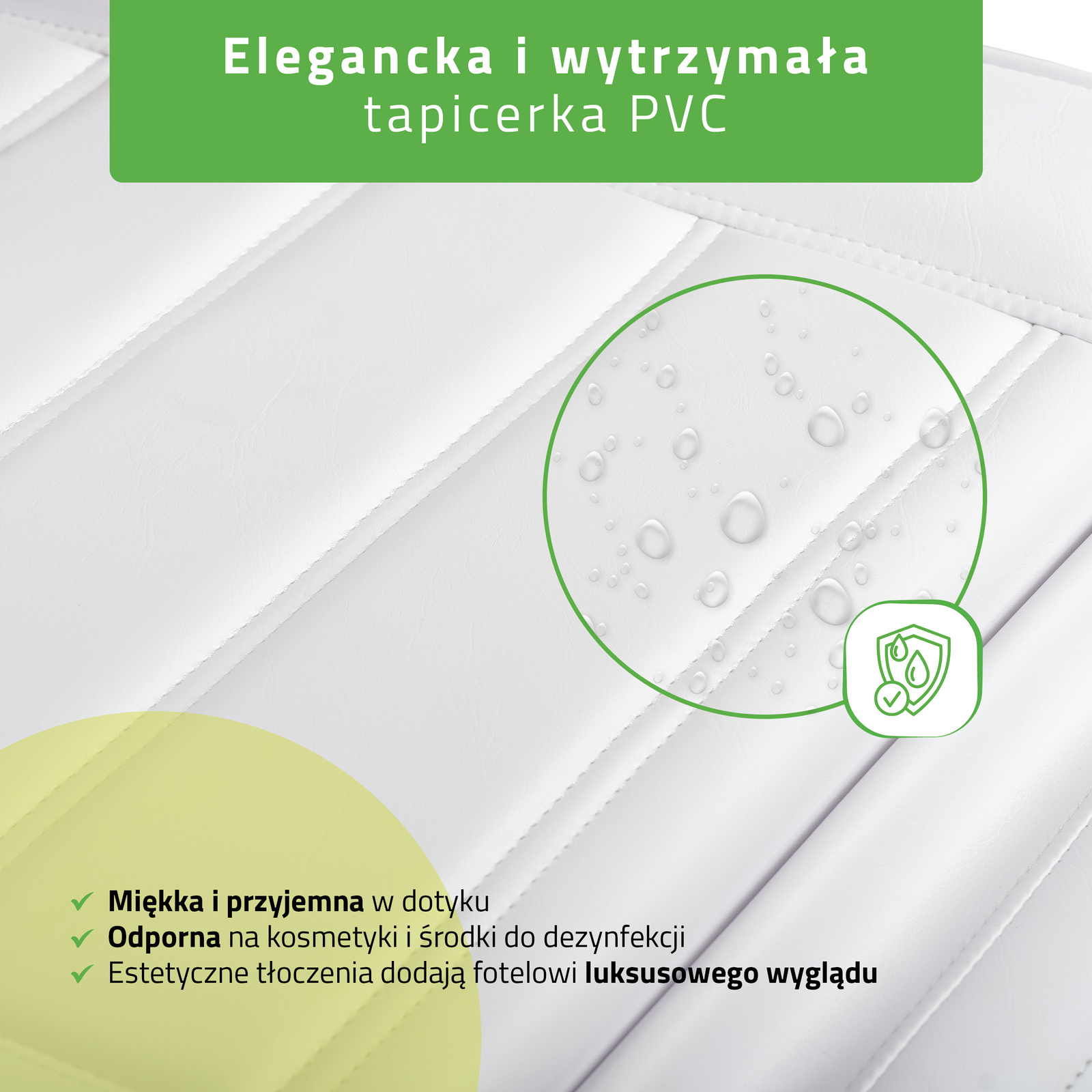 Wysokiej jakości tapicerka: wykonana z trwałego materiału PVC nie tylko zapewnia wyjątkowy komfort, ale jest także łatwa w utrzymaniu czystości.
