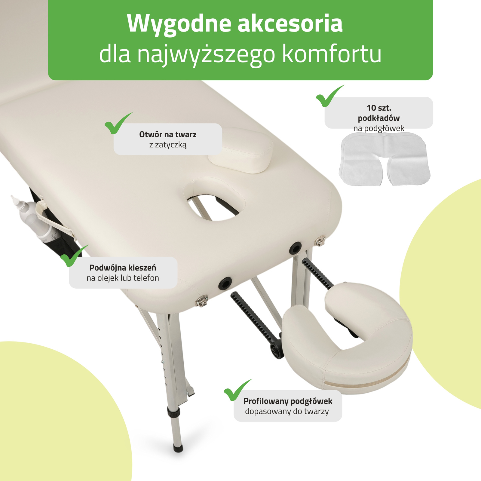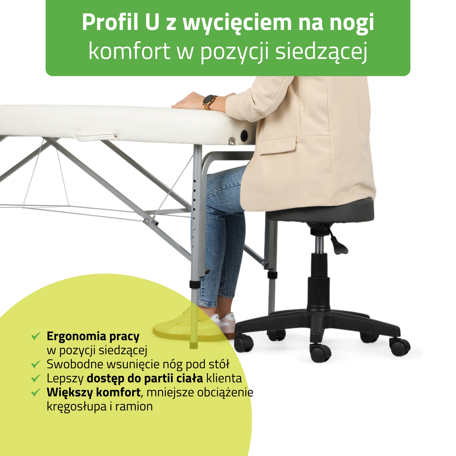 • Wygodna praca w pozycji siedzącej – np. podczas masażu twarzy.