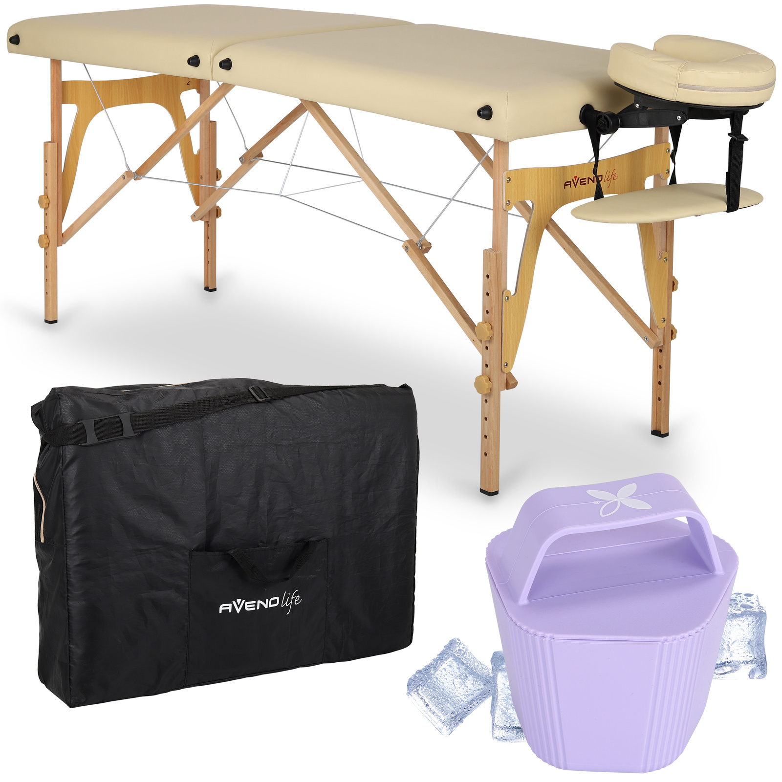 Zestaw - Stół do masażu Sonia 60 cm - beżowy, masażer lodowy do ciała, fioletowy