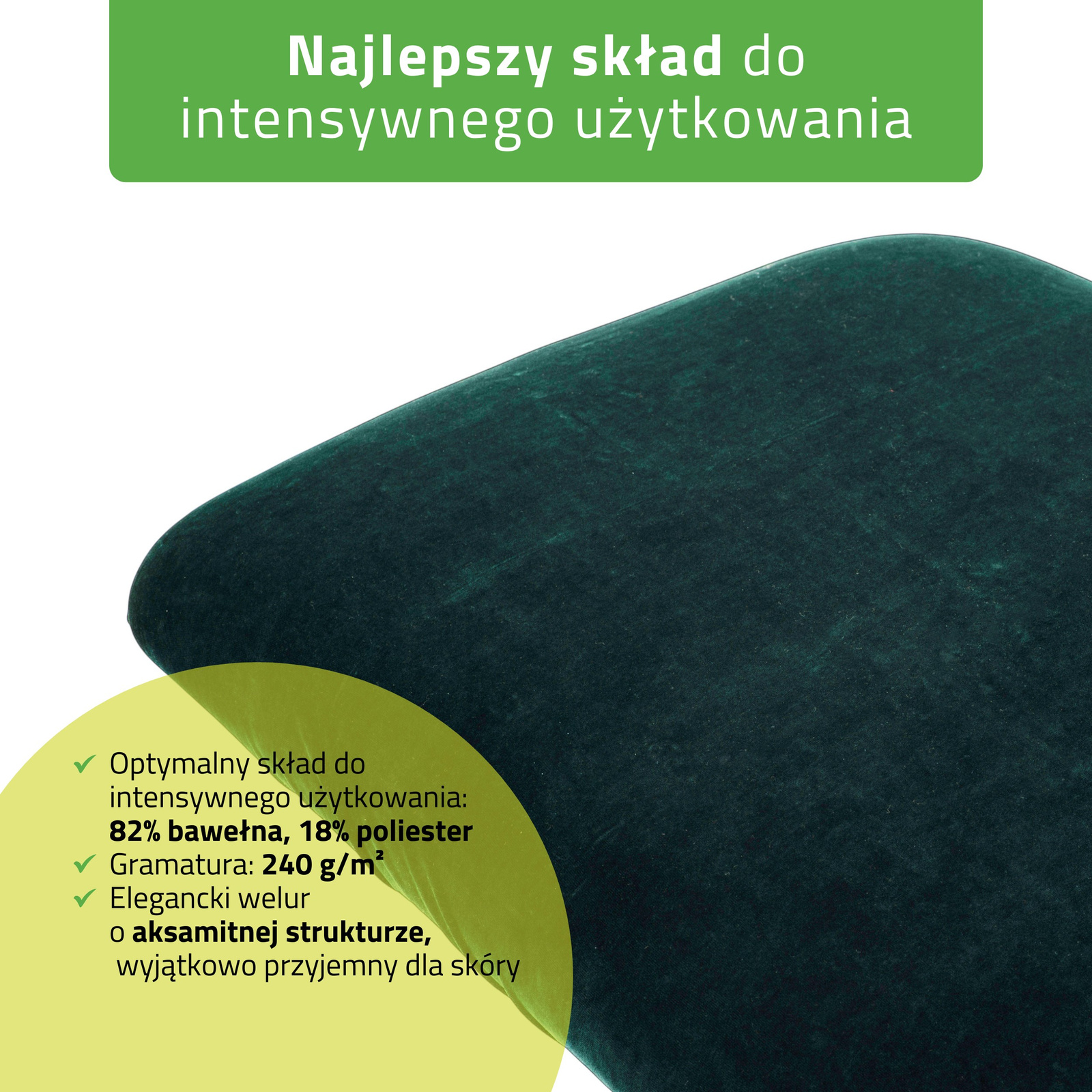- Miękki, luksusowy welur o wysokiej gramaturze: