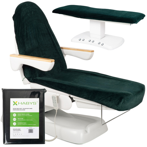 Prześcieradło welurowe z gumką i sznurkami na fotel kosmetyczny butelkowo zielone
