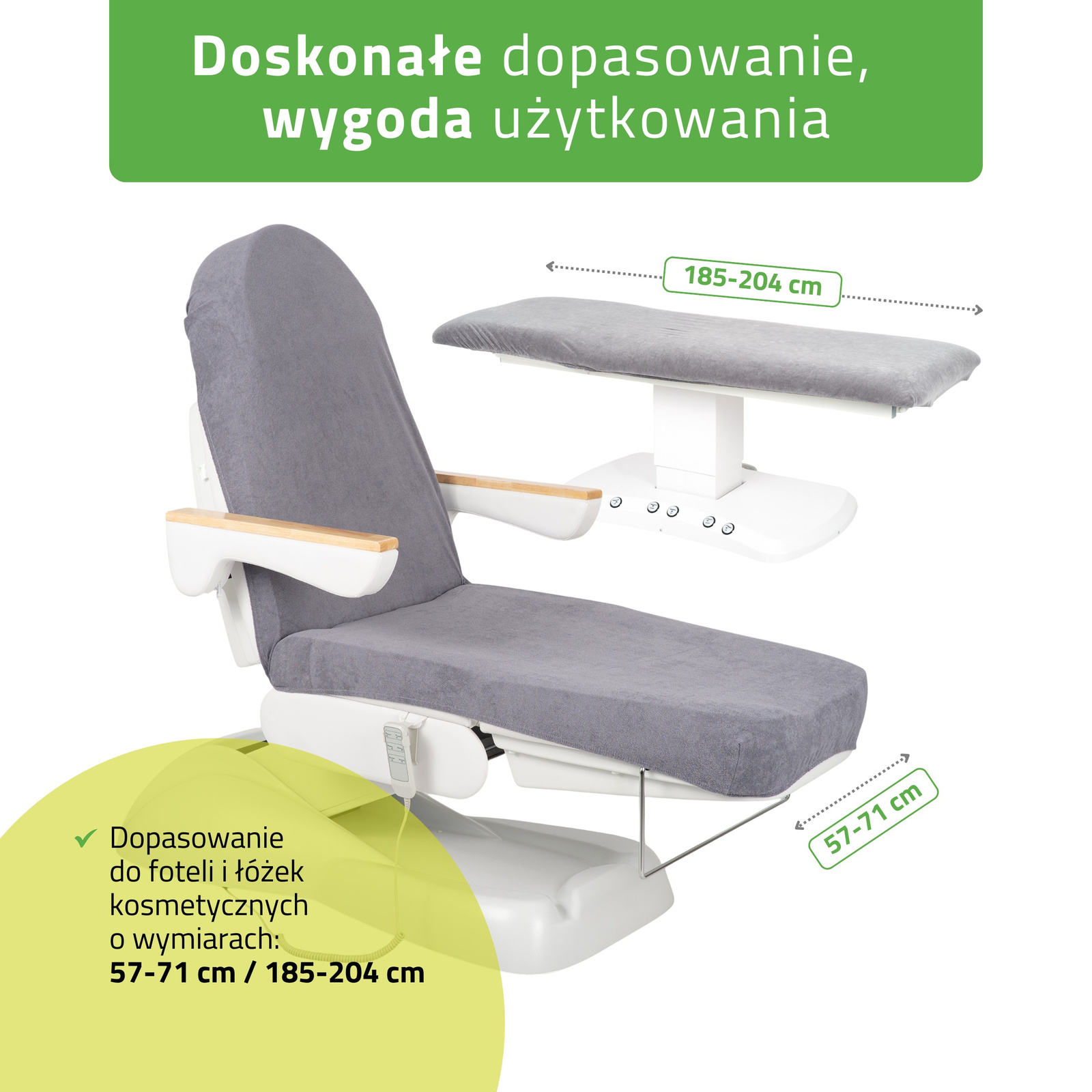 - Prześcieradło welurowe z gumką do foteli i łóżek kosmetycznych to praktyczny i estetyczny element wyposażenia gabinetów kosmetycznych, SPA, wellness oraz masażu.