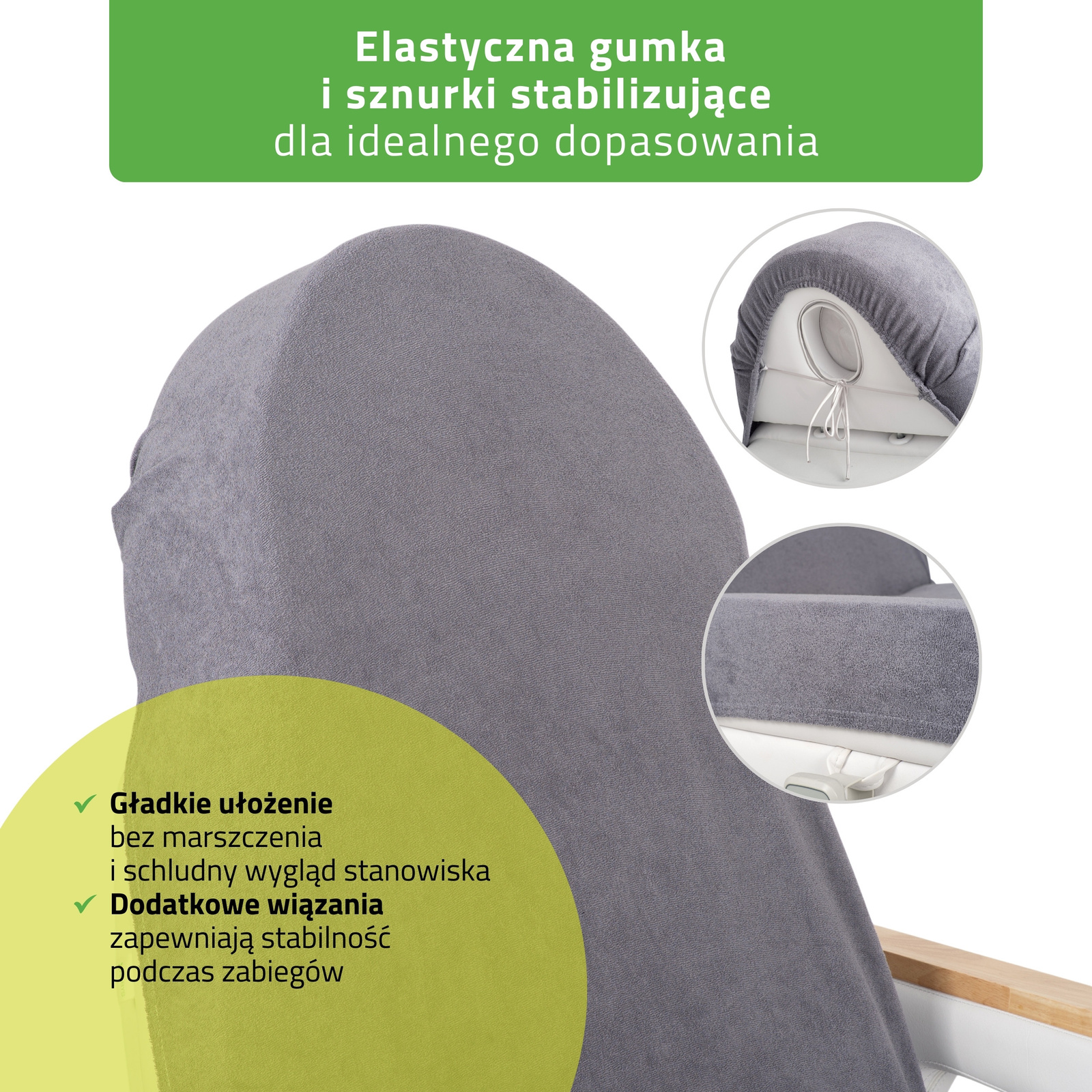 Prześcieradło welurowe z gumką i sznurkami na fotel kosmetyczny grafitowe