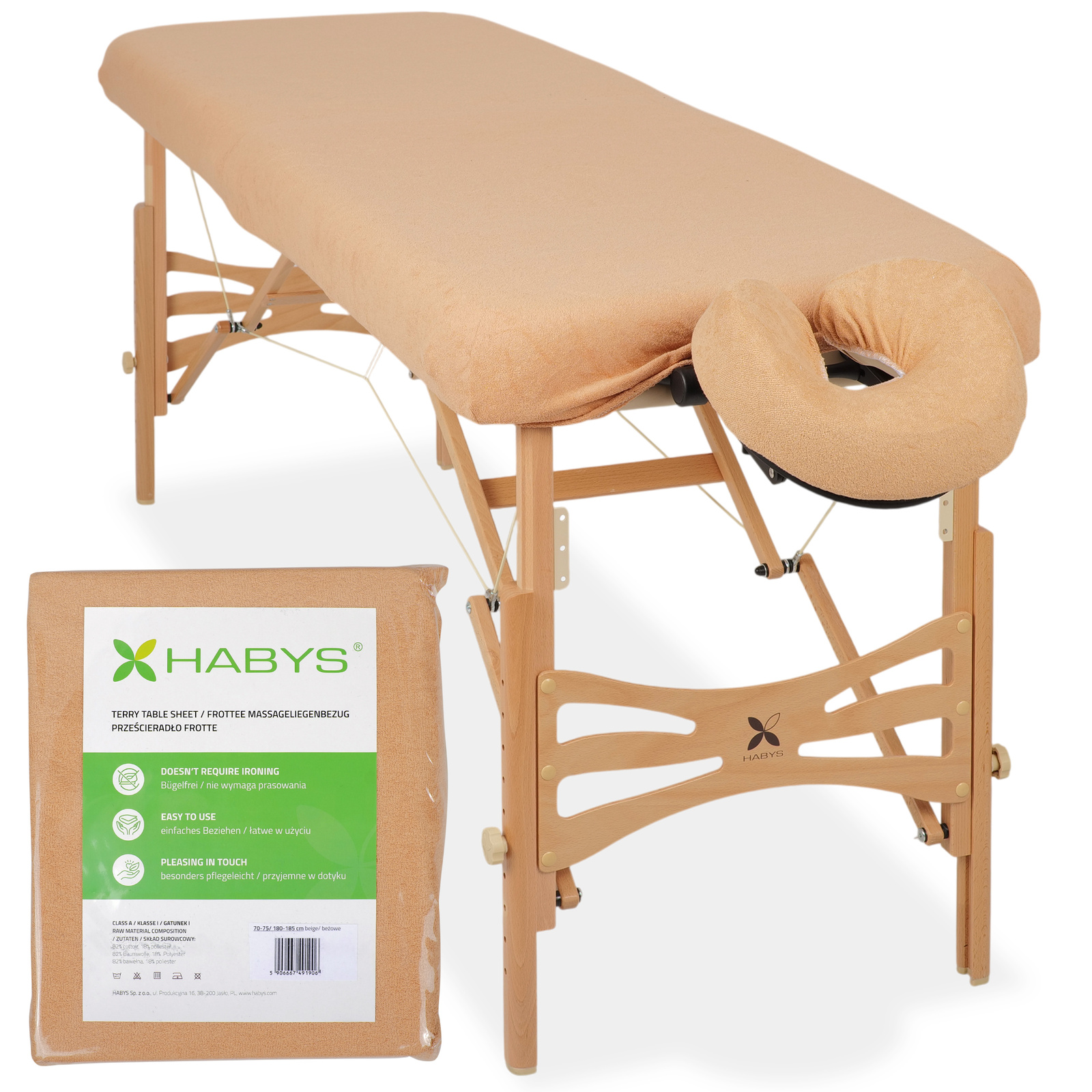 • 1-częściowe prześcieradło frotte z gumką – dopasowane do stołów o wymiarach 70-75/180-185 cm