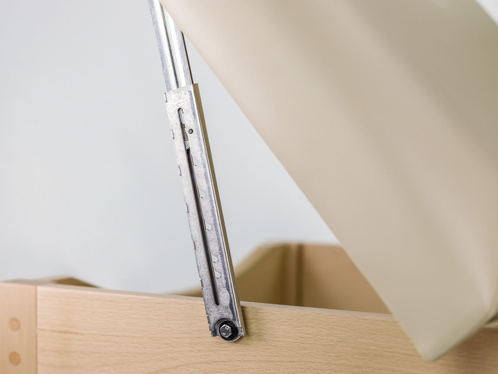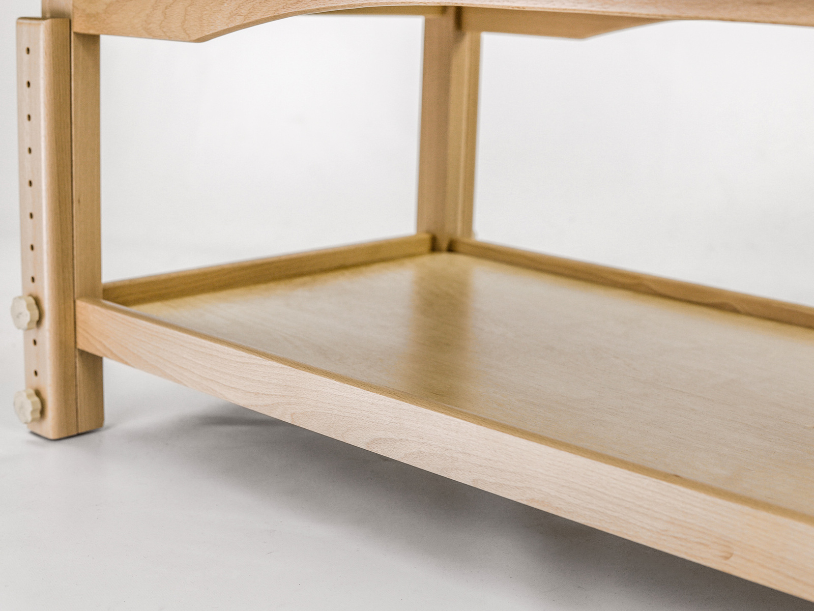 Naturalne drewno bukowe i masywny blat o zaokrąglonych narożach nadają leżance efektowny i nowoczesny wygląd.