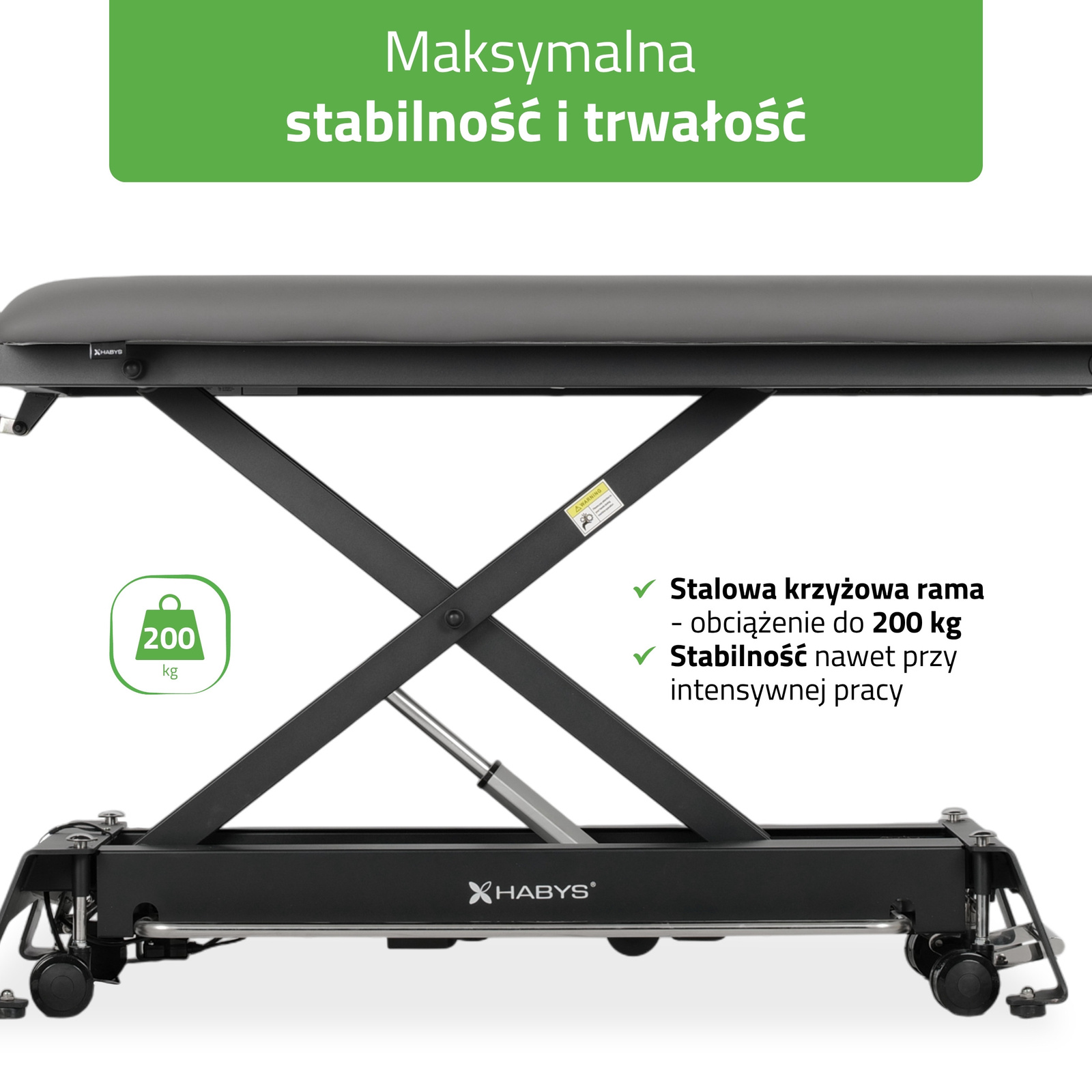 ZASTOSOWANIE: Stoły stacjonarne HABYS Evero umożliwiają fizjoterapeutom prawidłowe, bezpieczne i efektywne prowadzenie zabiegów rehabilitacyjnych, fizjoterapii, fizykoterapii, masażu, mających na celu leczenie lub łagodzenie przebiegu chorób oraz skutków urazów/upośledzeń. Budowa stołów rehabilitacyjnych HABYS Evero pozwala fizjoterapeucie na łatwy i pełny dostęp do pacjenta z każdej strony.