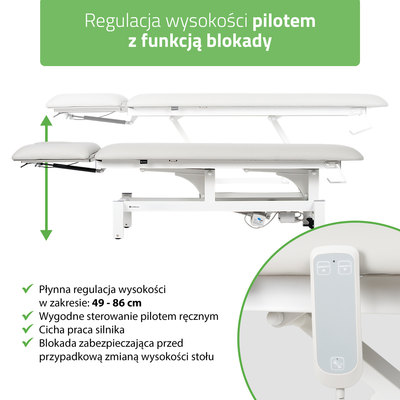 Stół rehabilitacyjny, do masażu, elektryczny Fortis 2 Ergo - pilot ręczny, szaro biały