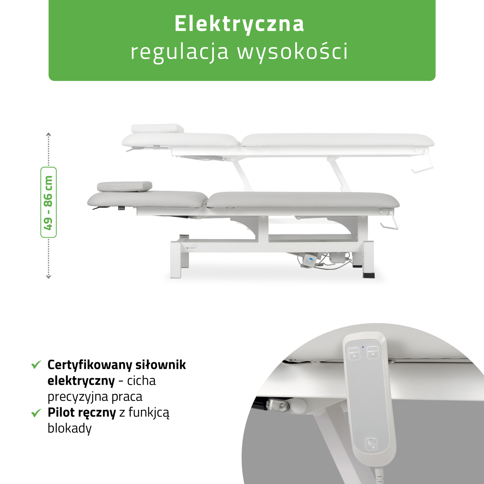 Stół rehabilitacyjny, do masażu, elektryczny Fortis 2 - pilot ręczny, szaro biały
