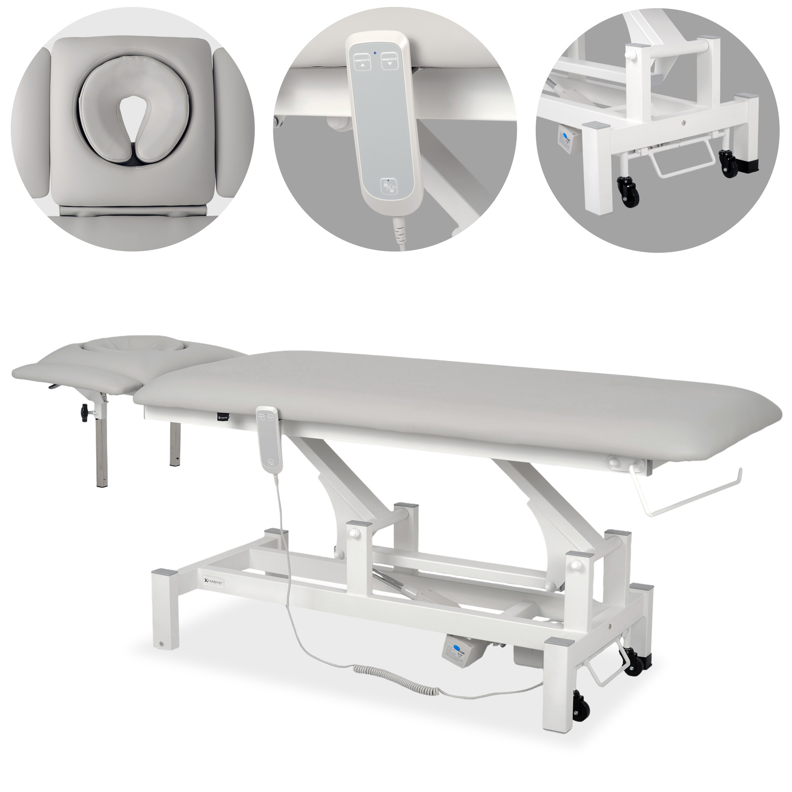 Stół rehabilitacyjny, do masażu, elektryczny Fortis 4 Ergo - pilot ręczny, szaro biały