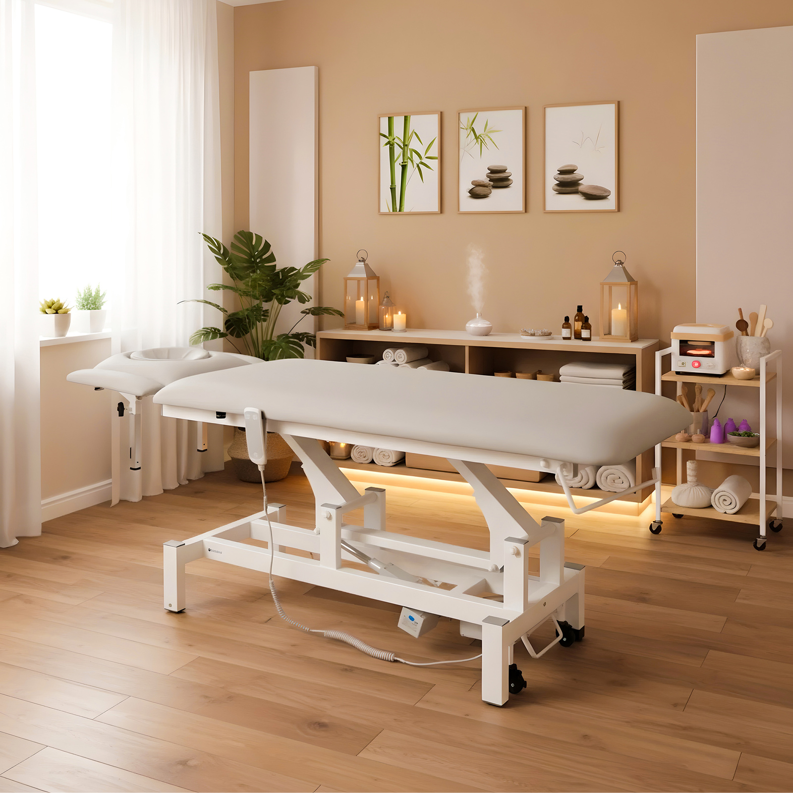 Cicha praca mechanizmów: zastosowane siłowniki elektryczne działają niezwykle cicho, co sprawia, że zabiegi odbywają się w spokojnej i relaksującej atmosferze.