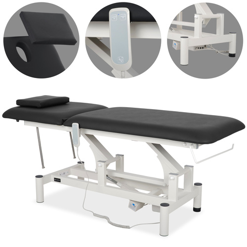 Stół rehabilitacyjny, do masażu elektryczny Optima – pilot ręczny, czarno biały