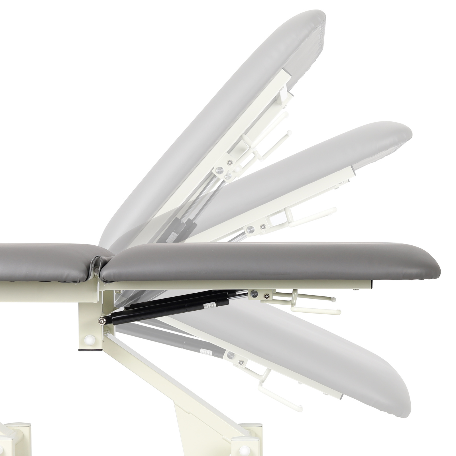 • Regulowany segment pod nogi: możliwość ustawienia za pomocą sprężyny gazowej kąta nachylenia segmentu pod nogi od to przydatne rozwiązanie w terapii manualnej, kończyn dolnych i pourazowej.