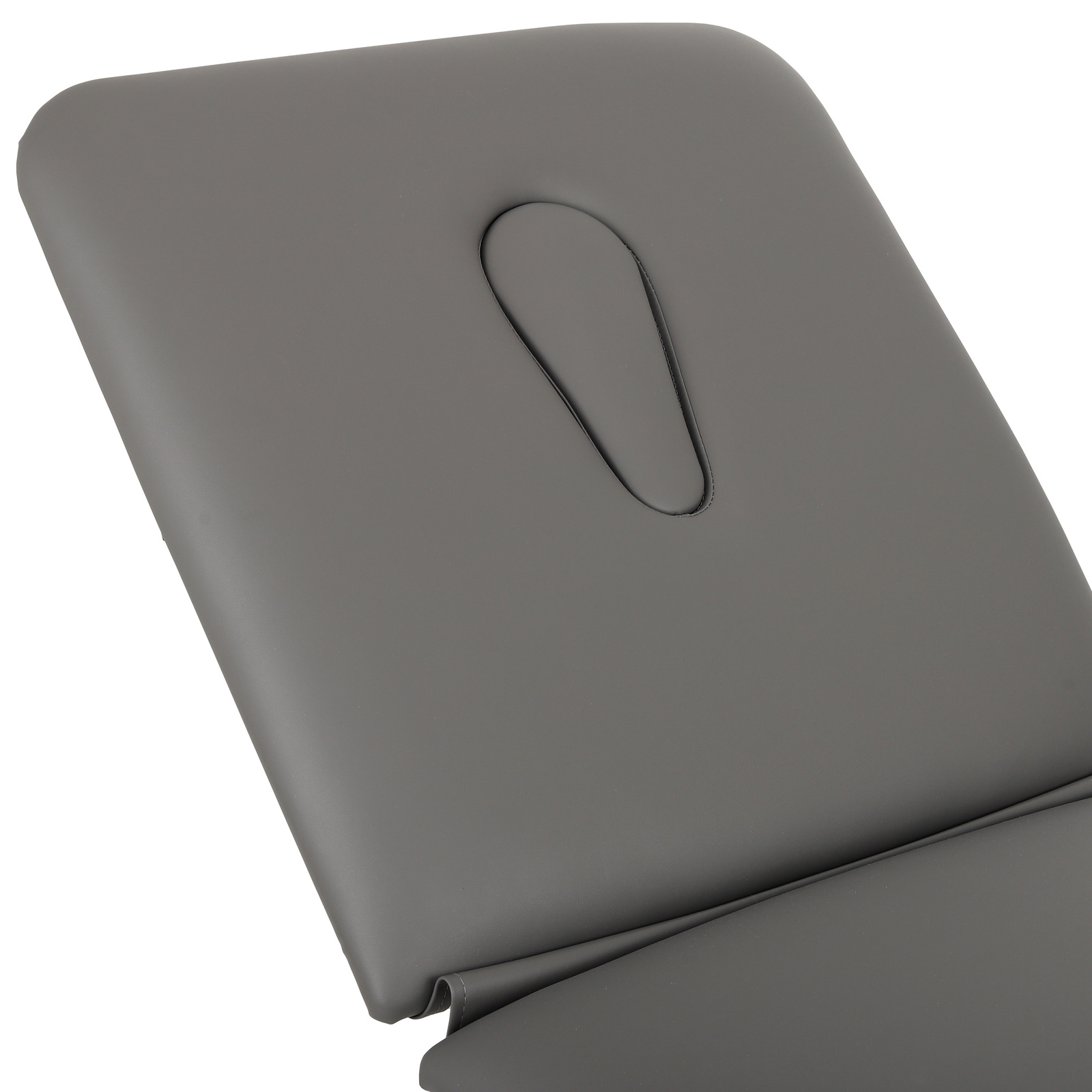 • Otwór na twarz: specjalnie wyprofilowany otwór w części regulowanego zagłówka zapewnia wygodne ułożenie twarzy podczas leżenia na brzuchu, dzięki czemu pacjent może przyjąć ergonomiczną pozycję bez konieczności skręcania głowy.