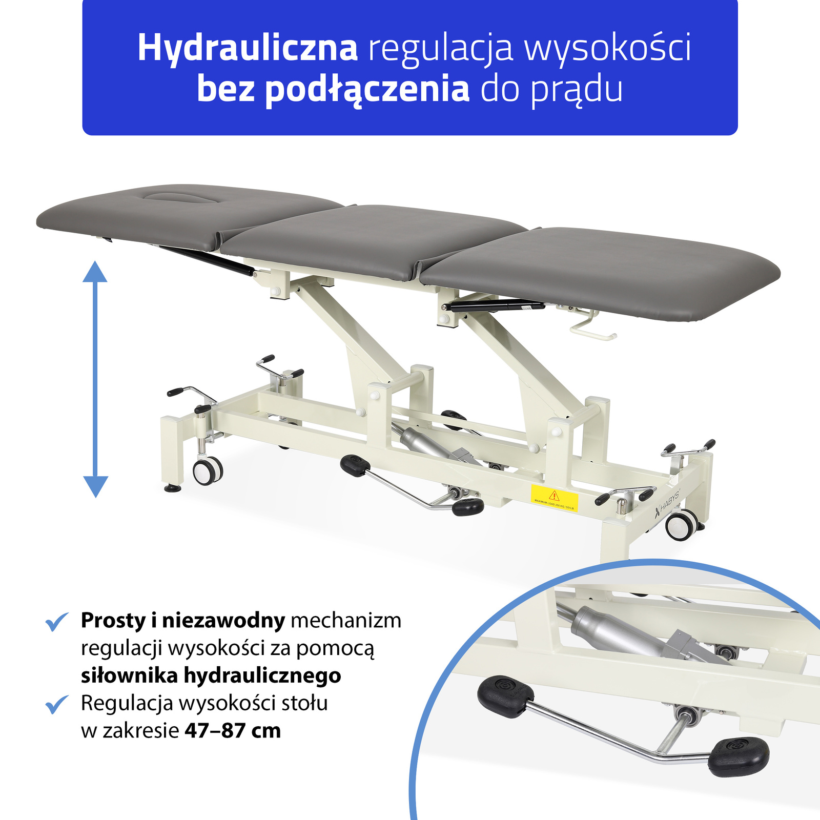 Stół rehabilitacyjny, do masażu, hydrauliczny Ultima H3 - szaro biały