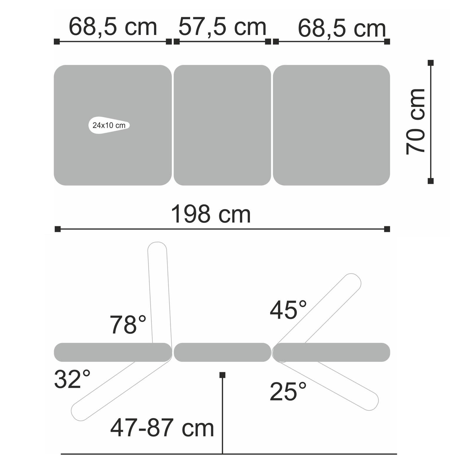 • Trzysegmentowy blat: zaprojektowany z myślą o uniwersalnym zastosowaniu, blat o wymiarach 198 x 70 cm, z regulacją segmentu nóg i zagłówka, umożliwia dopasowanie pozycji pacjenta do różnorodnych zabiegów terapeutycznych.