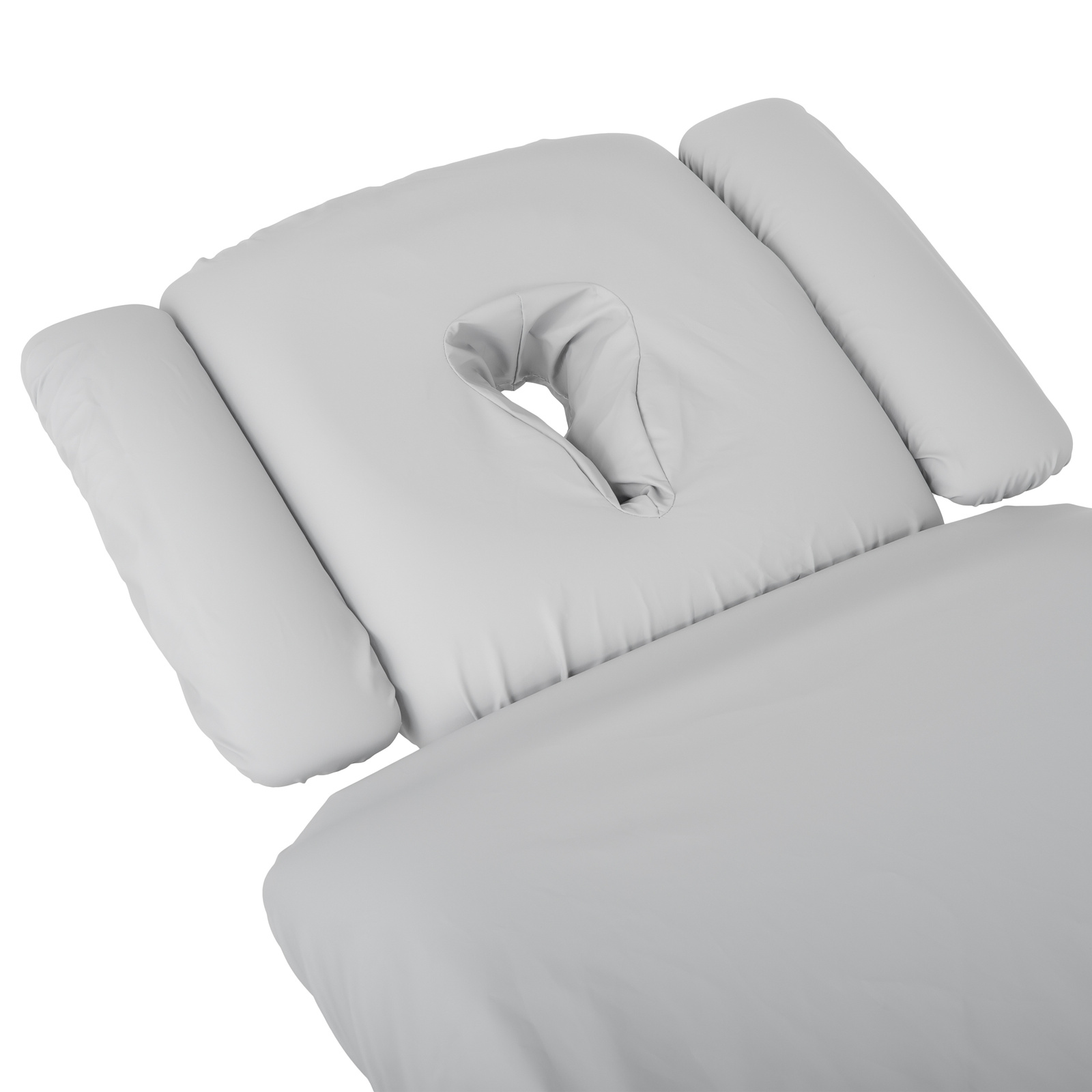 Skutecznie chroni tapicerkę Twojego stołu przed negatywnymi skutkami działania olejków oraz takich substancji jak makijaż, pot, płatki suchej skóry. Wykonane jest z paroprzepuszczalnego i elastycznego materiału, które pozwala pokryciu „oddychać” i doskonale dopasować się do kształtów stołu.