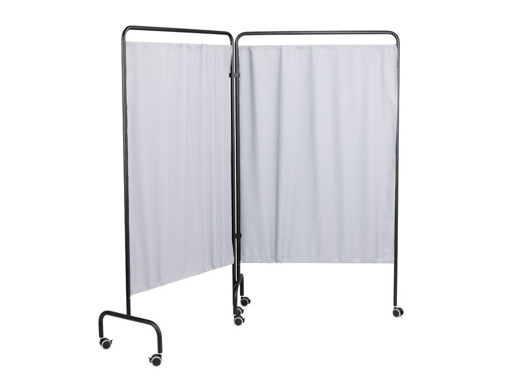 Parawan standard, modułowy wykonany ze stali pokrytej wytrzymałym czarnym matowym lakiem proszkowym. Specjalne kółka z hamulcami umożliwiają wygodne przemieszczanie oraz ustabilizowanie, nawet na śliskiej powierzchni. Dzięki opcji modułowej można rozbudować go o dodatkowe skrzydła. Idealny jako niezbędne wyposażenie każdego gabinetu fizjoterapii czy masażu.