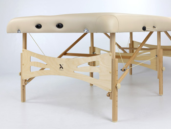 Stół Integral wyróżnia bardzo komfortowe, obszerne leżysko oraz duża stabilność, którą zapewnia wzmocniona konstrukcja z drewna bukowego z trzema parami nóg. Rozwiązania te gwarantują z jednej strony wygodę pacjentowi a z drugiej wysoki komfort pracy terapeucie, który może, przy ustalonej wcześniej, wysokości blatu stołu, swobodnie i bezpiecznie przybierać różne pozycje ciała podczas sesji terapeutycznej, tak by efektywnie i zachowując zasady biomechaniki móc prowadzić terapię. Pacjent może komfortowo ułożyć się we wszystkich, niezbędnych konfiguracjach pozycji leżenia tyłem, przodem czy na boku, a w razie potrzeby terapeuta może bezpiecznie m. in. siadać czy klękać obok pacjenta na stole.