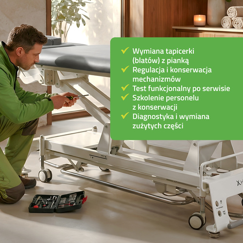 - Diagnostykę stołu i wymianę zużytych części (jeśli potrzebne). Serwisant sprawdzi działanie wszystkich podzespołów (układu elektrycznego, hydraulicznego itp.).