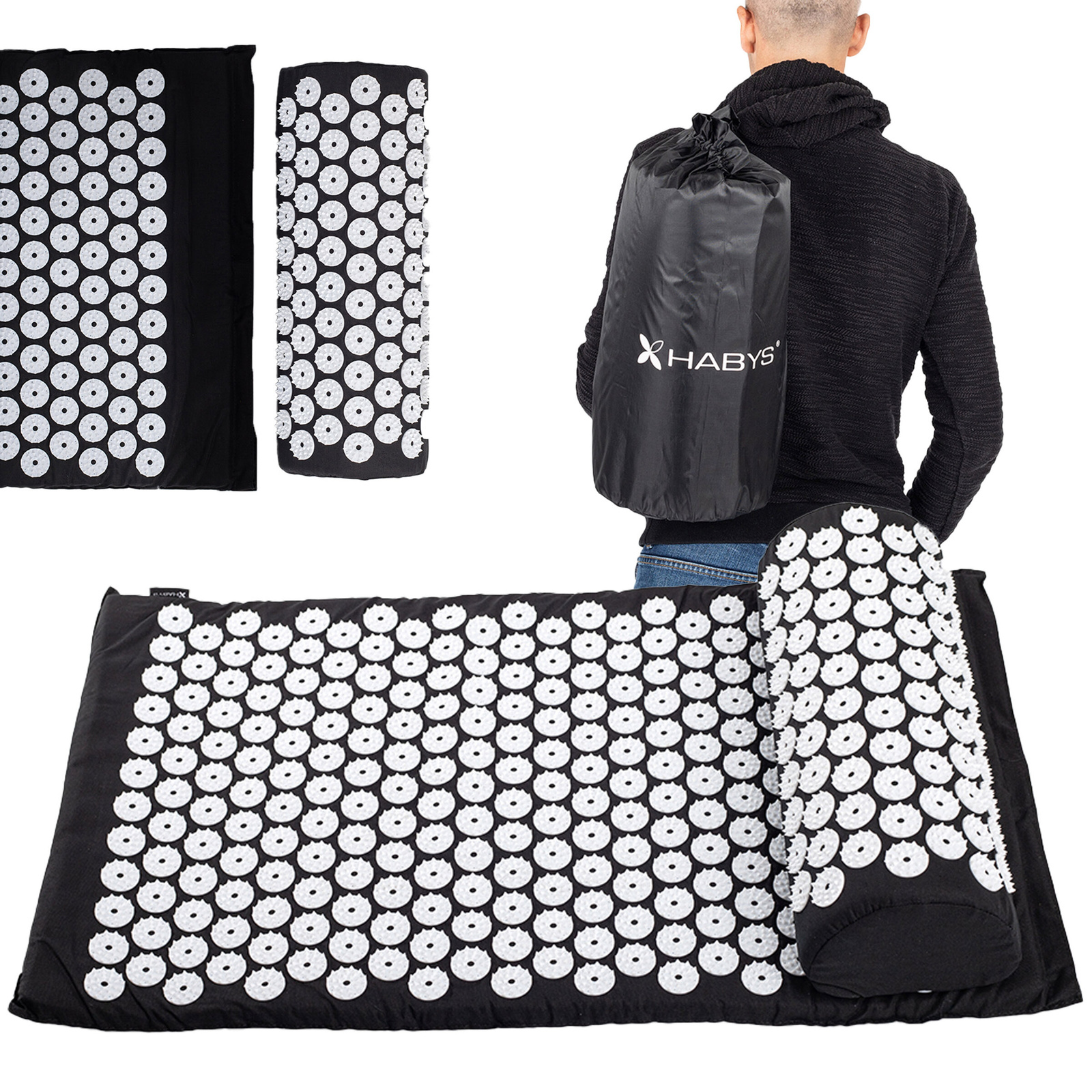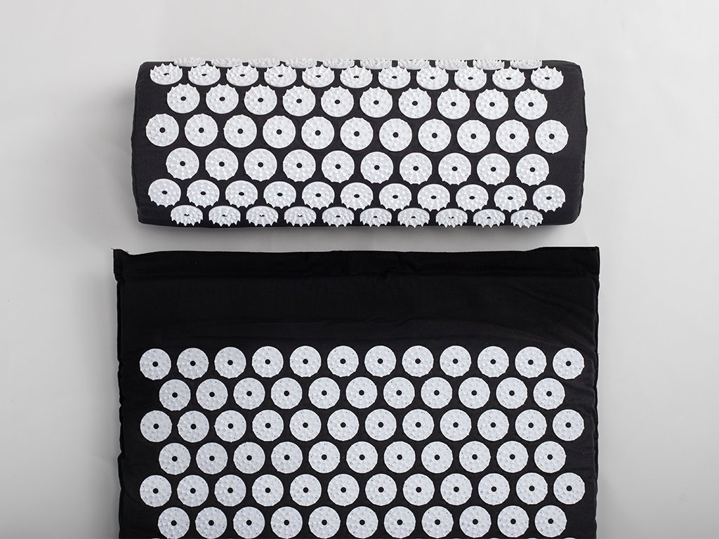 Zestaw do akupresury, czyli specjalna mata i poduszka, zostały wykonane z miękkiej, naturalnej bawełny. Mata składa się z 242 rozet z kolcami, z kolei poduszka z 73. Każda z rozet ma po 42 kolce, co łącznie daje ponad 13 tysięcy punktów. Kolce są wykonane z bezpiecznego dla ciała tworzywa ABS. Ich specjalny kształt oraz odpowiednia gęstość ułożenia na macie zapewniają optymalny ucisk ciała podczas użytkowania.